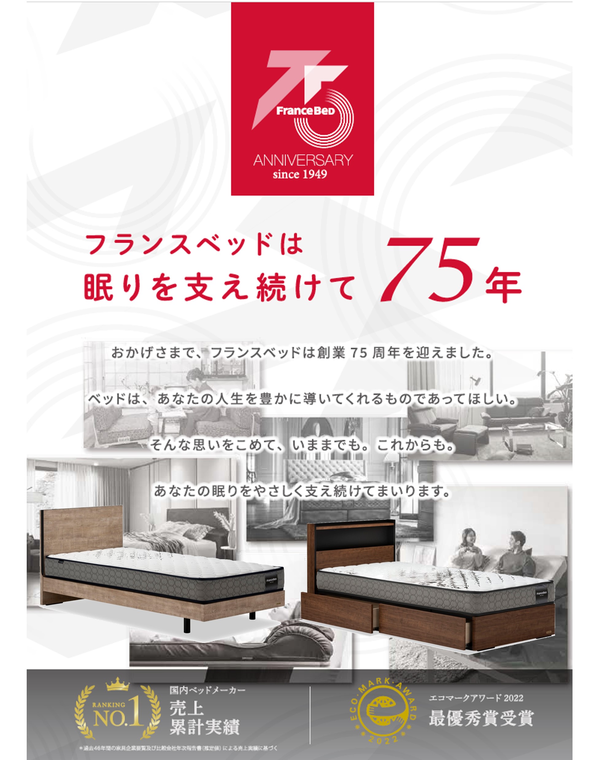 シンプルデザインから、引出収納付、ソファベッドまで、フランスベッドが長年培ってきた機能満載のお得なベッドです。