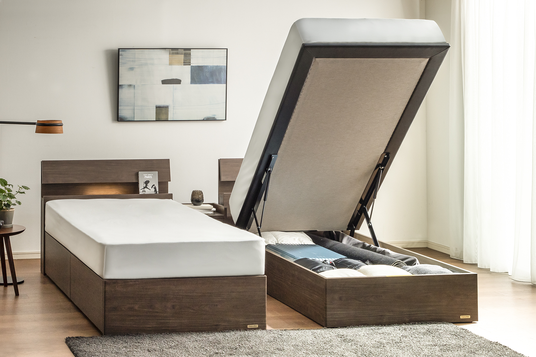 また、暮らし方に合わせて機能が選べるベッドや住まいの収納不足を一気に解決できる収納付ベッドなど、