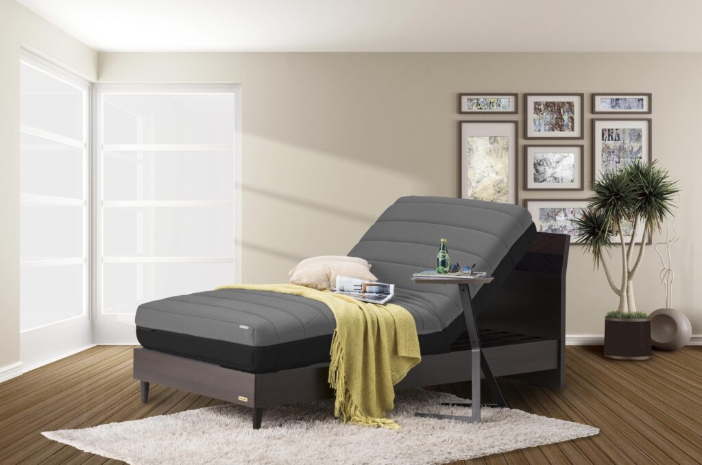 ソファ感覚・座椅子感覚でくつろげて、好きなベッドフレームにも載せられる、新発想のリクライニング機能を内蔵したマットレス。