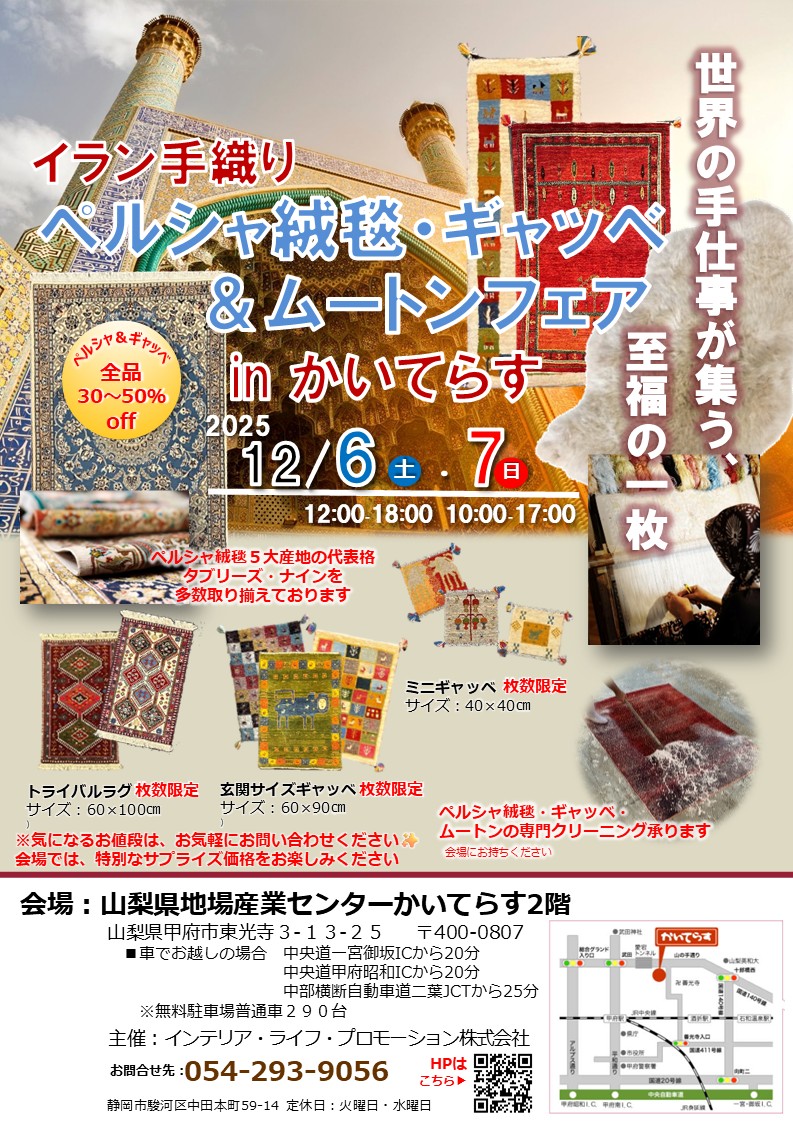 【イラン手織りペルシャ・ギャッベ絨毯&ムートンフェア in かいてらす】