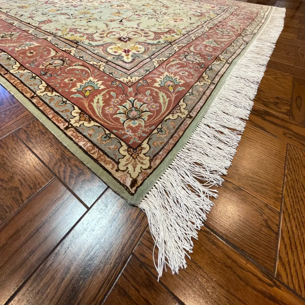 ペルシャ絨毯クリーニング染み抜き、房補修後