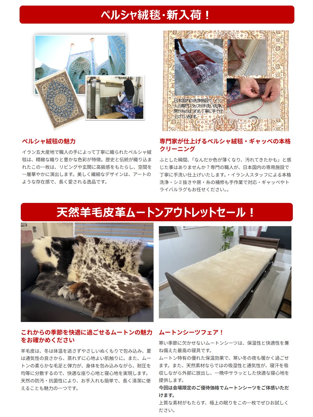 会場では、絨毯の専門クリーニングも承っておりますので、ぜひお持ちください